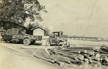 賃挽き製材所開設創業者の岡本卓二は終戦後すぐ、垂井町に賃挽き製材所を開設。