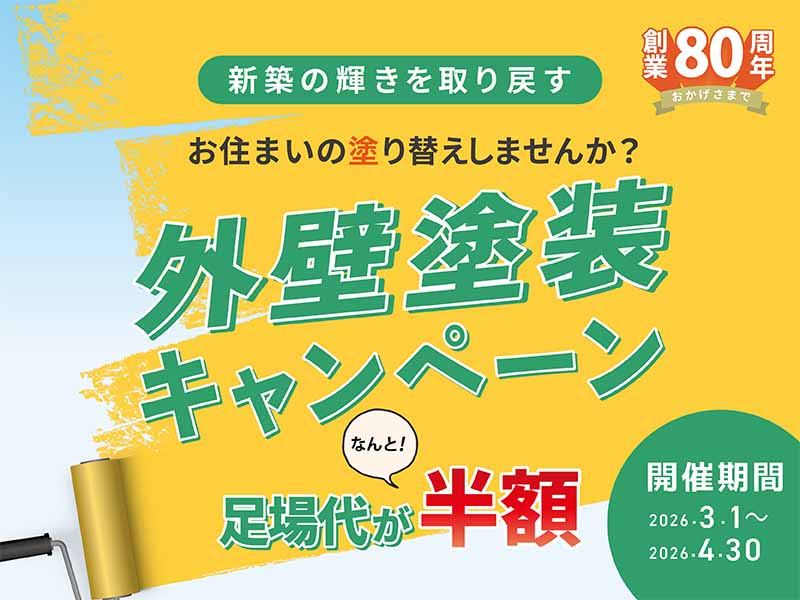 今がチャンス! 足場代半額・外壁塗装キャンペーン