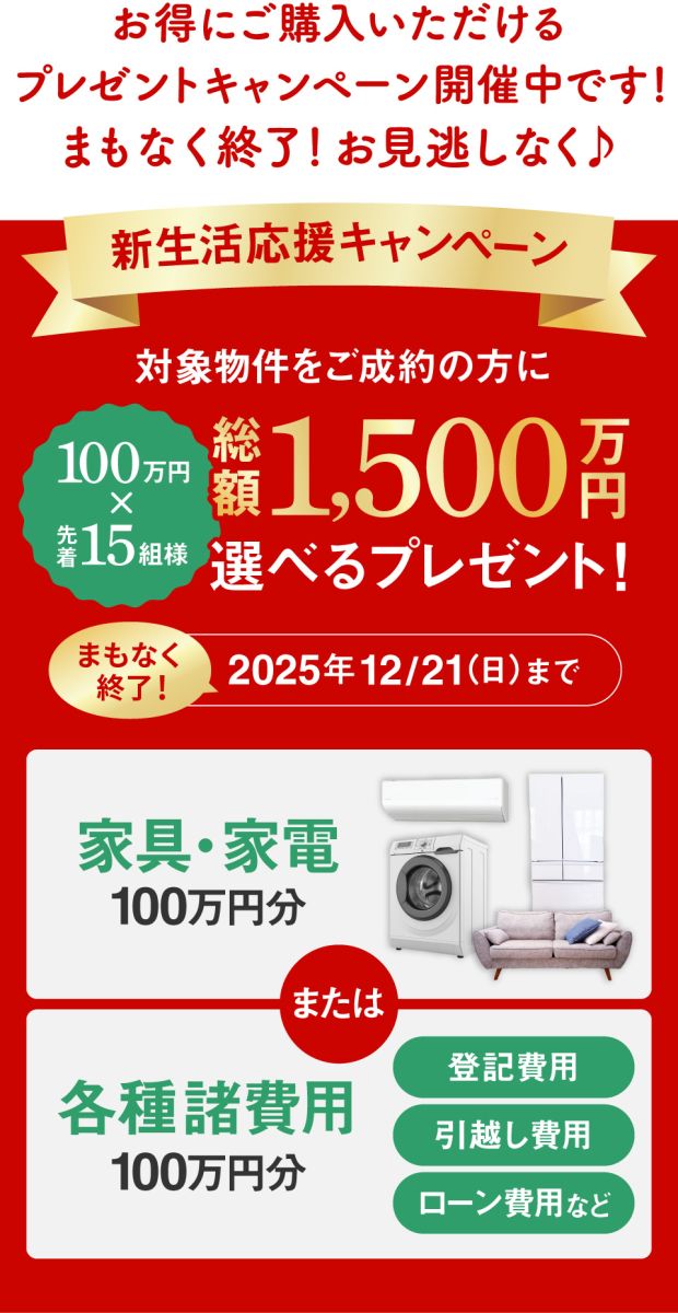 12月21日(日)までにご成約の方には、100万円分の選べるプレゼントも!お得に購入いただけるチャンスです♪