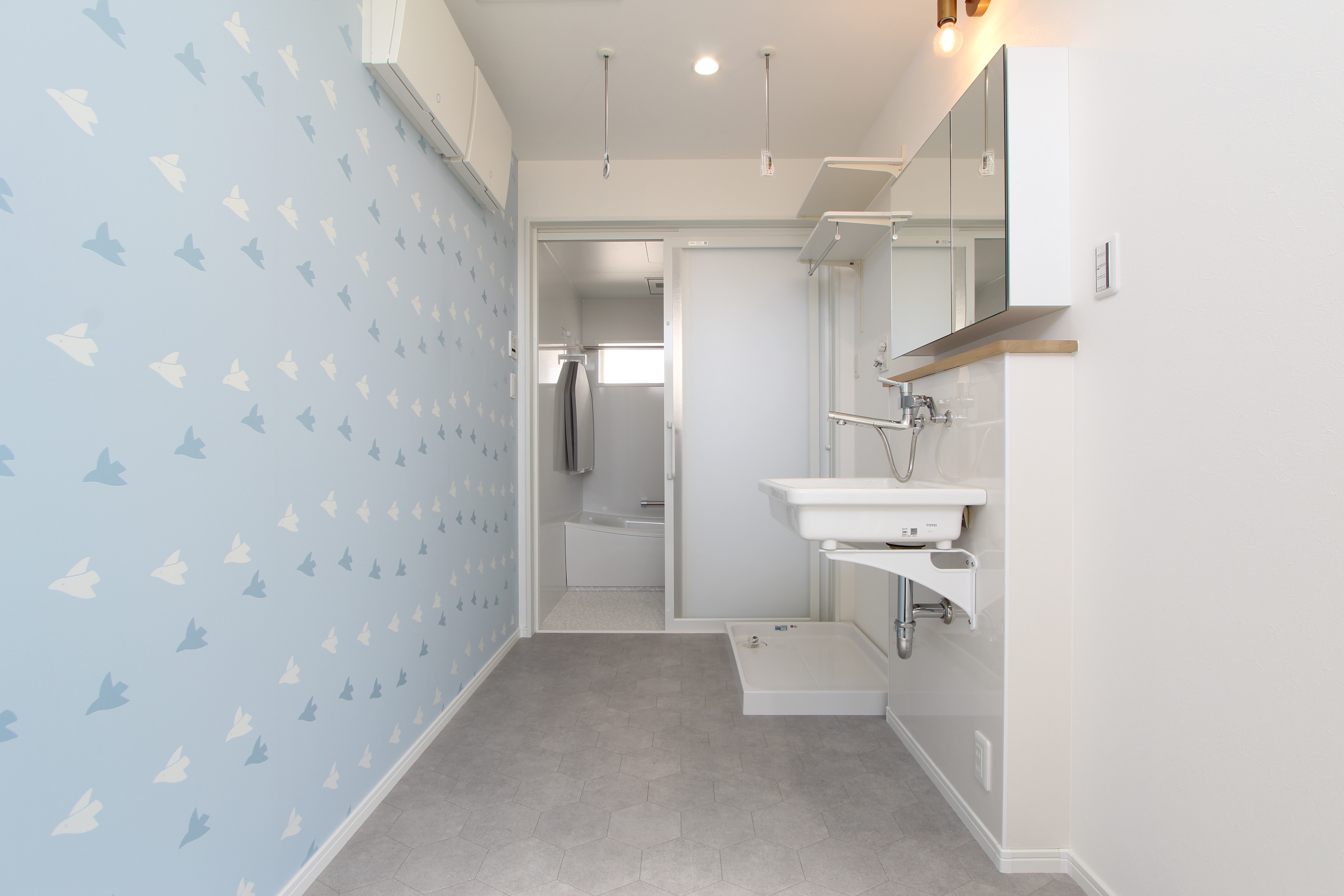 優しい色合いのナチュラルな外観と内観。綿密に計算された収納。「ファミリークローク」「ランドリールーム」「パントリー」「土間収納」「書斎」やおしゃれなアクセントクロスなどお気に入りを全部詰め込んで、家事も子育ても楽しみながら暮らす家。